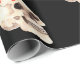 Halloween themed pattern features watercolor illustration of white skull with red melting candle on black background