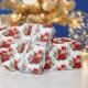 Wrapping paper with a pretty bouquet made with watercolors. Red candles with gold accents and a smaller white candle too. Surrounded by a pine bouquet with a poinsettia flower.