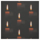 Light up your life with this elegant fabric design. It features a repeating pattern of simple still life photography of a brown candle with a lovely flame in shades of white, yellow, gold and orange. It is set on a pure black background.