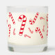 Red and white striped candy canes in various sizes are tumbling around the outside of the candle, on a white background. ***Part of coordinated set - BKM1a.