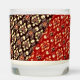 Thai Pattern Candle – A beautifully designed candle in a glass holder, featuring a traditional Thai gold and red pattern. Perfect for adding elegance, warmth, and cultural charm to any space.