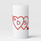 Two hearts pierced by one arrow, each has an initial. Red graphic may be personalized with desired initials.