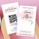 Let customers discover your fragrances with this feminine scent sample card. Designed in a girly pink and white aesthetic (or edit to any colors you need!) with modern script fonts, this template includes space for your brand name or logo, a custom QR code for easy orders, and a dedicated area to attach a sample of your candle, wax melt, room spray or essential oil scent.