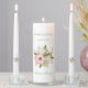 This wedding unity candle set is shown with a lovely floral image with a sage green color text.