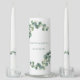 This wedding unity candle set is shown with a botanical image with a smoky green color text.