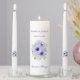 This wedding unity candle set is shown with a lovely purple color floral image with a purple color text.