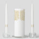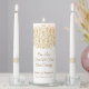 This candle unity set is shown with a lovely gold-tone filigree with"One Love For All Time And Eternity". Sample text shown in colors of gold-tone. White candle.