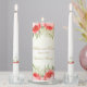 This wedding candle unity set is shown with a lovely pink roses print design with gold text.