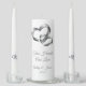 This candle unity set is shown with a wedding two hearts design with hearts in a silver tone with crystals and grey text.