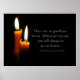 Two burning candles and the following quote from Mahatma Ghandi: "There are no goodbyes for us. Wherever you are, you will always be in our hearts."