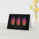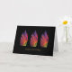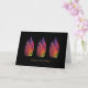 Fractal birthday candle flames on a black background adorn this greeting card.