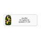 Candles with golden flowers against a backdrop of Christmas greens makes a beautiful return address label for the holidays.