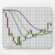 Colorful indicator Alligator on the candlestick chart. White background with check. Stock market concept.