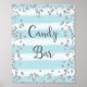 Poster print for Candy Bar wedding sign with faux silver glitter design and light blue stripes watercolor background.