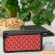 Bluetooth Speaker in reflective pink squiggle shapes on a base colour of red.