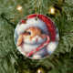 Candy Cane Bunny Rabbit Christmas Ceramic Ornament