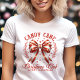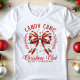 Add a touch of festive charm with this coquette-style Candy Cane Christmas Club t-shirt! The design features a large red and white striped bow surrounded by delicate holly and greenery, perfect for spreading holiday cheer. This whimsical and vintage-inspired look is ideal for Christmas gatherings, holiday parties, or as a cute seasonal gift. The soft pastel elements bring a nostalgic feel while staying trendy with a classic coquette aesthetic. Perfect for anyone who loves the magic of the season and stylish holiday fashion.