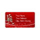 A candy cane with a holly ribbon on a red background with snow embellishments. Use as a stick on gift tag or as an address label template. Text is customizable.