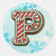 Candy Cane Christmas "P" Sticker, Festive Stripes Classic Round Sticker