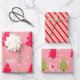 Candy Cane Christmas Pink Tree Doodle Wrapping Paper Sheets