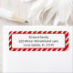 Add a festive touch to your holiday mail with this red candy cane-striped return address label. Perfect for baby showers, holiday cards, or winter party invites, this label features a bold red and white border with green accents and customizable text. A cheerful and professional way to coordinate your seasonal correspondence with your Santa Baby theme.