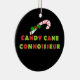 A striped candy cane and red and green holiday text that reads "Candy Cane Connoisseur" on keepsake ornaments perfect for anyone who loves candy canes!
