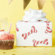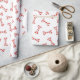 This gift wrap features a red and white watercolored Candy Cane striped dog bone on a bright white background. Perfect for the dog lover in your life.