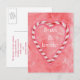 Pretty and modern painting of red and white candy canes, forming a heart, on a frosty red, pink, and white blended background, is printed on custom invitation postcards. There are easy to use template forms ready for customizing. There are matching items in this store. Thank you for shopping at CherylsArt on Zazzle.