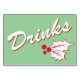 Decorate your Holiday or Christmas party with these retro style "Drinks" table cards featuring red and white on a mint green background with red and white holly leaves and berries.