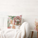 Candy cane house, gingerbread man, poinsettia throw pillow