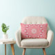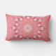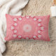 Painting of a candy cane heart on a frosty pink background, modified in to a kaleidoscope pattern, printed on rectangle lumbar pillows.