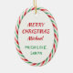 Imagine your child's delight in having a Christmas ornament from Santa Claus to him or her! This cute ornament has a vintage image of a classic Santa holding a gift package. The image is framed with a pretty red, green, and white candy cane stripe pattern. The back of the ornament has the same striped frame, and several text fields for you to customize. If you prefer, you may easily make it from Mom & Dad, or anyone else, in place of Santa.