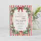 This playful Christmas party invitation features classic red and white candy cane stripes with evergreen garland, burgundy bow, and festive ornaments. Snow-dusted pine branches frame the design with golden snowflakes adding magical touches. Perfect for casual holiday gatherings with a cheerful, whimsical vibe. The fun and festive aesthetic brings merry Christmas spirit to your celebration invitations.
