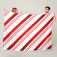 A red and white, candy cane striped blanket. Themed perfectly for the winter.