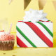 Stripes of bright red and green on a white background wrapping paper, on the diagonal for a candy cane effect