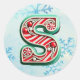 Candy Cane Xmas "S" Sticker, Festive Stripes Classic Round Sticker