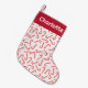 Perfect! Exactly what I ordered! I uploaded a picture of my blue chow, and the screen print was incredible. the back side of the stocking was the red and black checkered print. my puppy's name was also printed on the cuff of the stocking. PERFECT! Highly recommend this product! My puppy's name was screen printed onto the cuff of the stocking, the font was perfect!