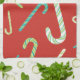 Candy canes with green and blue stripes adorn this red towel. This would be fun to give as a Hanukkah gift as well. A beautiful addition to your Christmas Kitchen or to include in a kitchen inspired gift basket. A beautiful towel that will work hard for you in the kitchen as a kitchen towel or as a decorative piece.