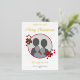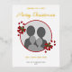 Festive photo template design featuring Destei's original illustration of two red and white striped Christmas candy cane treats decorated with a red bow and a Christmas holly / Common holly plant. The photo is framed by a red color border. There are also four personalizable text areas. Some of the text is placed in the real foil design area to give the card that beautiful foil effect.