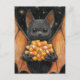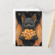 An adorable bat holding a pile of candy corn AI generated art for Halloween and the autumn season