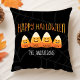 Candy Corn Family Name Personalized Halloween Throw Pillow