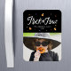 Cute Halloween magnet featuring "Trick or Treat" displayed in white handwritten script surrounded by candy corn and purple, off-white, yellow, and orange dots. Personalize the colorful Halloween magnet by adding your family name, the year, and a photo.
