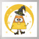 Candy Corn never but sweeter! Candy Corn Witch T-shirts, hoodies, trick or treat tote bags, mugs, cards, stickers, magnets, buttons, and other Halloween apparel and gifts with a cute candy corn with eyes, arms, legs, and a witch hat on a stars and harvest moon background.