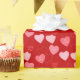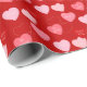 A pattern of ubiquitous candy conversation hearts reading “Love You”, “Be Mine”, "Kiss Me", "XOXO" and “Hug” in red, rose, and pink cascading over a Valentine red background