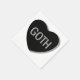 A grayscale candy heart that says, "GOTH."