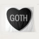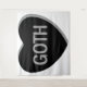 A grayscale candy heart that says, "GOTH."