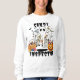 This image is a Halloween-themed design featuring a ghost in the center, with the words "CANDY INSPECTOR" written in bold black letters below. The ghost is depicted with a friendly, cartoonish expression and is surrounded by various candy-themed elements, including lollipops, candy canes, and candy corn. On either side of the ghost are two jack-o-lanterns, each with a different expression. The jack-o-lanterns are filled with colorful candy, adding to the festive and playful atmosphere of the design. The background is transparent. Overall, the image is a whimsical and cheerful representation of the Halloween holiday, with a focus on the sweet treats that are often associated with the occasion.