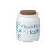The candy jar was a gift. The recipient absolutely loves it. It shows two rescued pets who are now adopted and the logo of the national charity that facilitated the rescues. The featured dog's adoptive mom ordered a jar too; she and the dog both love it as well. The dog is especially fond of the candy jar as mom keeps doggie treats in it. The printing is undoubtedly excellent although I did not see it in person myself.