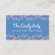This is a blue candy business card for a candy maker