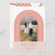 Candy pastel pink stripe rainbow 1 photo Christmas Holiday Card